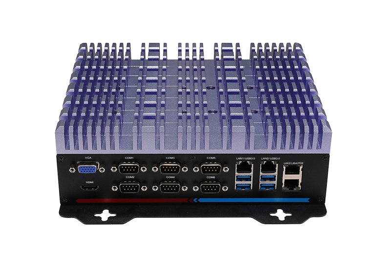 ●接口豐富   6*USB3.0,32* GPIO(16*GPI,16*GPO),1*遠程開關,1*VGA,1*HDMI,支持雙屏同步異步顯示,標配4*Intel LAN,6*COM(標配6*RS232,COM1-2可選RS232/422/485),支持1*M.2(2242/2260/2280,SATA SDD),1*2.5寸硬盤位,2*MINI PCIE(支持WiFi或擴展卡),1*SIM槽,2*M.2(支持1*M.2 2242 Sata SSD 和1* 5G/3052或 4G/3042模塊),6*天線孔