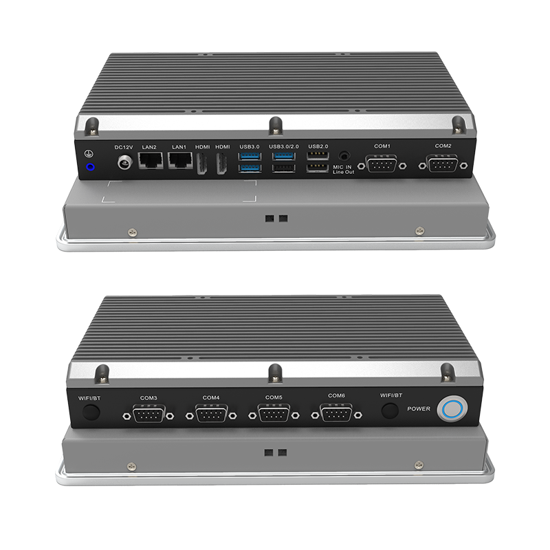 低功耗:英特爾® 賽揚® J6412 板載處理器,TDP 10W外觀設計:鋁合金一體成型,工藝精細,科技時尚穩定可靠:純工業無風扇設計,大面積鋁鰭散熱,箱體材質可抗接觸式6Kv強電磁干擾;液晶屏接觸處加強型密封膠圈設計,面板防水防撞擊人機界面友好:純屏10點工規電容觸控,操作更便利接口豐富:2*LAN(Intel),6*COM,3*USB3.0,3*USB2.0,2*HDMI,1*M.2(KEY-M,2280,支持PCIE x2信號 NVME SDD),1*Mini PCIE(全高,PCIE+USB信號,支持WIFI/BT)