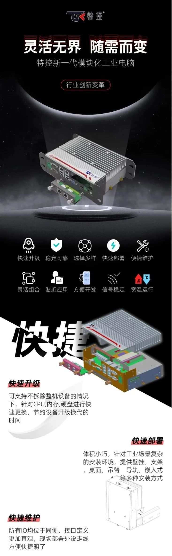 靈活無(wú)界,隨需而變,特控新一代模塊化工業(yè)電腦,行業(yè)創(chuàng)新變革。快速升級(jí)、穩(wěn)定可靠、選擇多樣、快速部署、便捷維護(hù)、靈活組合、貼近應(yīng)用、方便開發(fā)、信號(hào)穩(wěn)定、寬溫運(yùn)行。